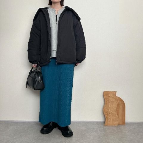 表面素材のスカートやカラー系ボトムにも合わせやすいのが特徴!!