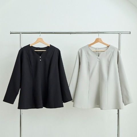 首元のパール調のボタンがアクセントになり、オケージョンシーンやビジネスにオススメなアイテムです。