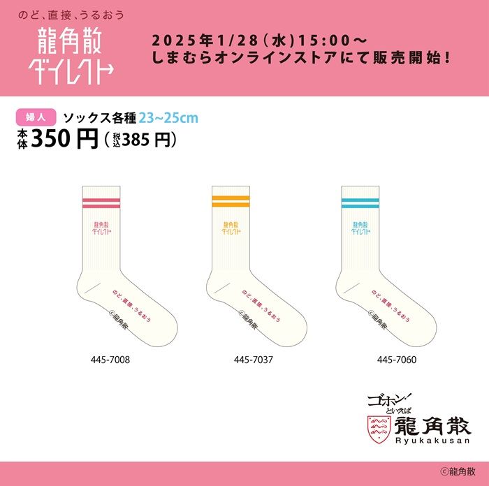 しまむら『龍角散ダイレクト』コラボを2026年1月28日(水)~販売します。ソックスがラインナップ!