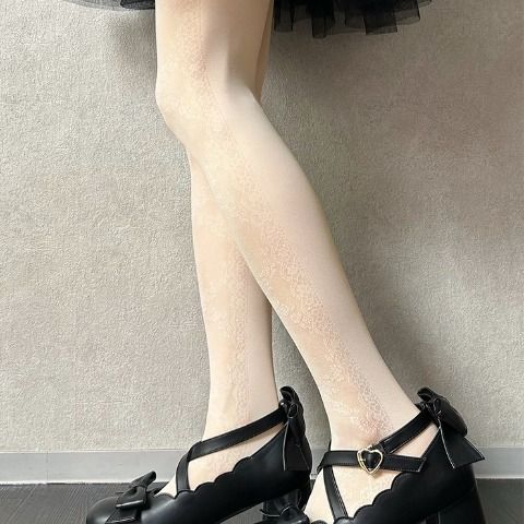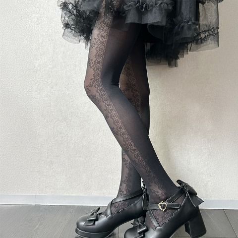 薔薇柄レースアップデザインが特徴のシアータイツです◎