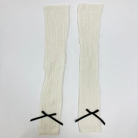 編み編み柄にリボンがポイントのロングレッグウォーマーです。