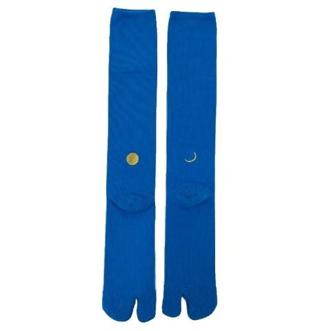 左右異柄の月刺繍がポイントのハイソックスです。