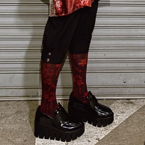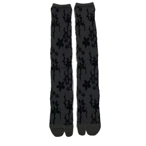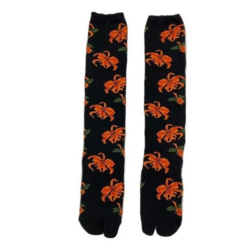 ビビットなカラーリングに繊細な花柄で上品に仕上がったハイソックスです。
