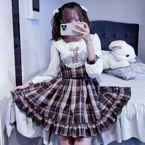 レディース レースアップフリル衿チェック柄ワンピース(サノカナメ) 3,200円(税込 3,520円)