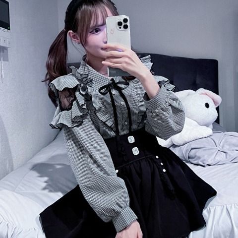 大人っぽさ全開のボウタイ付きフリルブラウス