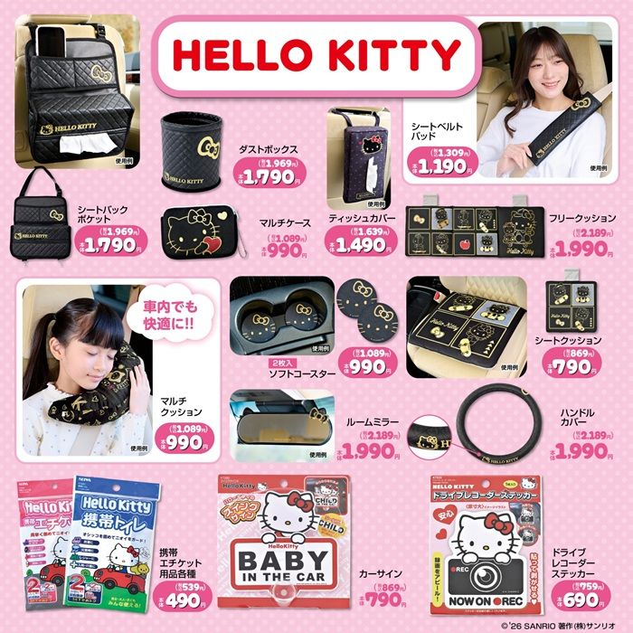 しまむら『サンリオ』コラボ!シートクッション、ティッシュカバー、マルチクッションなどのカー用品、インテリア雑貨が2026年2月4日(水)より新発売!