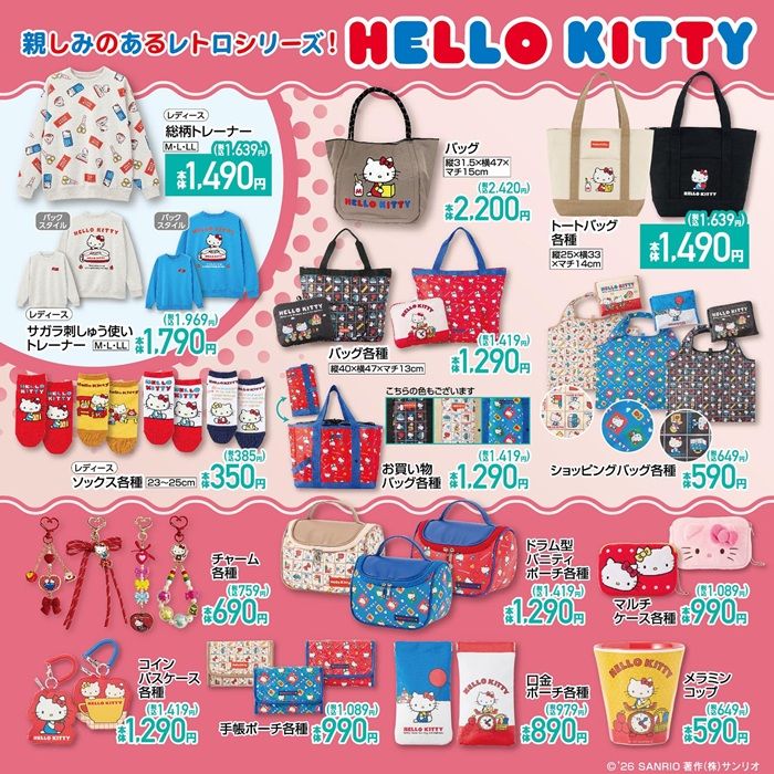 しまむら『サンリオ』コラボ!ハローキティのアパレルや雑貨、インテリアグッズなどが2026/2/7より新発売!再販売は?懐かしいレトロなデザインも!