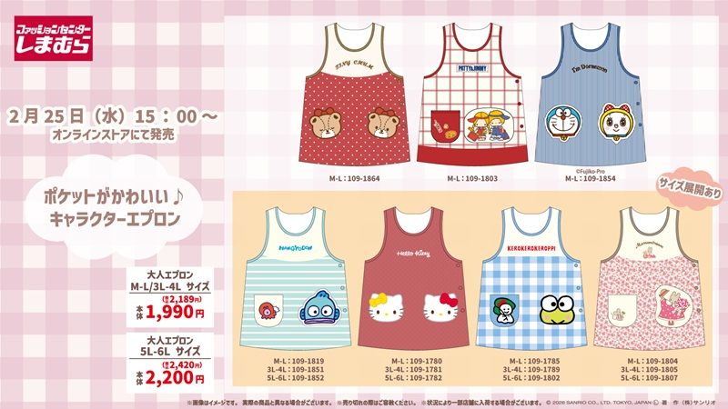 しまむら『サンリオ』コラボの新作を、2026年2月25日(水)~販売します。エプロンがラインナップ!