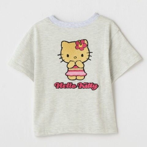 日焼けキティのぽこぽこのさがらししゅうがかわいいTシャツです。