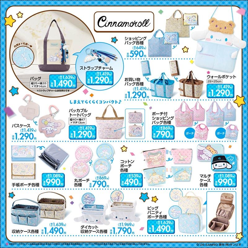 しまむら『サンリオ シナモロール』コラボ!Tシャツ、雑貨、バッグ、ポーチ、インテリアなどが2026年3月4日(水)より新発売!