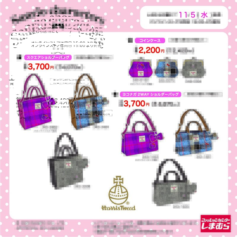 11月5日(水)『ハリスツイード × サンリオキャラクターズ』コラボ!バッグ、コインケース