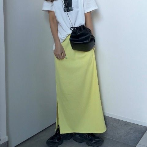 テレコ素材で履きやすいナロースカートです。