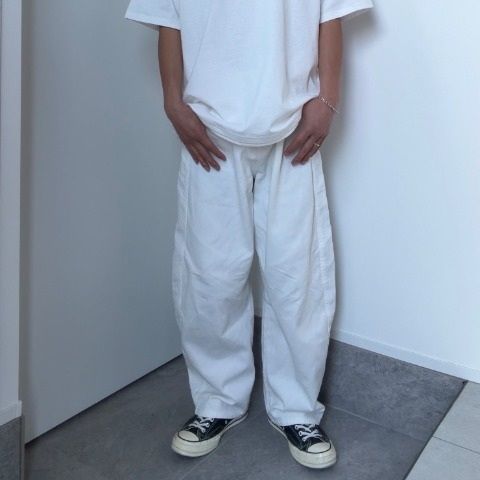 春らしいオフホワイトのコクーンパンツです。