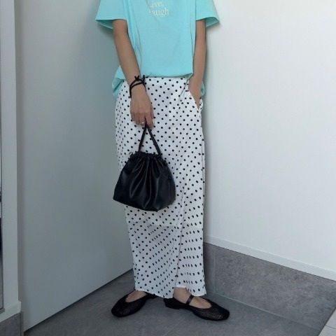 水玉プリントのナロースカートです。