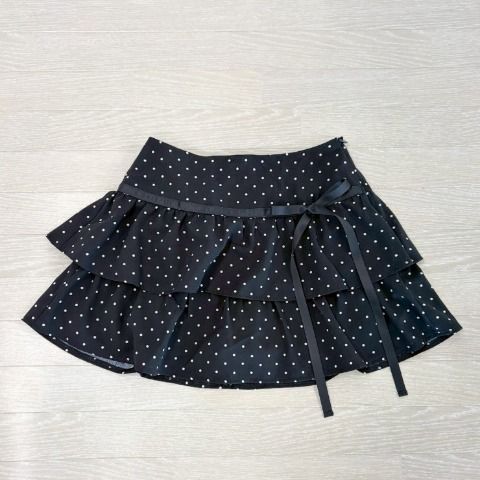 ドット柄がガーリーな印象を与えるティアードスカート。