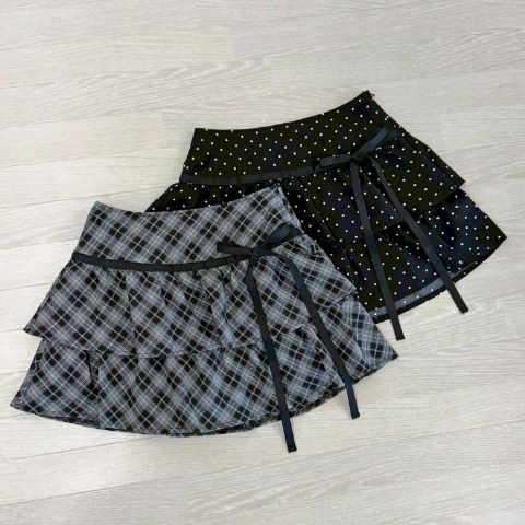 ガーリーなチェック柄にレイヤード風のティアードデザインが目を引く主役級スカート。