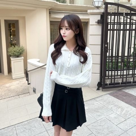 シャツ襟がドッキングになったセーター。一枚でコーディネートが完成する便利なアイテムです。