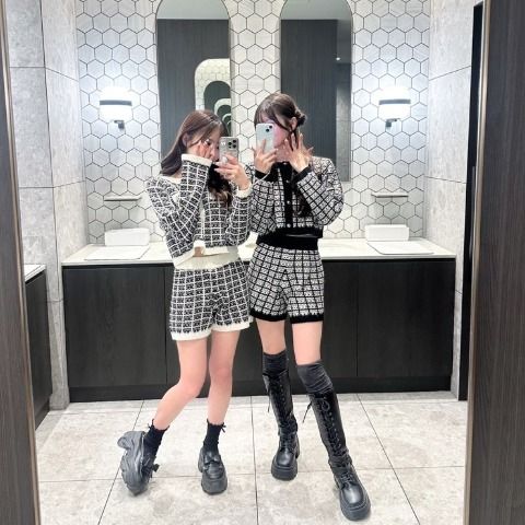 今年トレンドのニットショートパンツをツイード柄でガーリーに仕上げました。