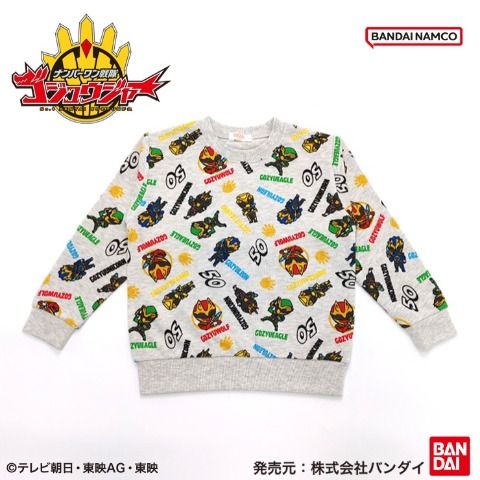 ゴジュウジャーの総柄プリントがポイントの、裏毛素材のトレーナーです。