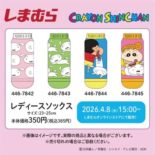 しまむら『クレヨンしんちゃん』コラボを2026年4月8日(水)~販売します。ソックスがラインナップ!