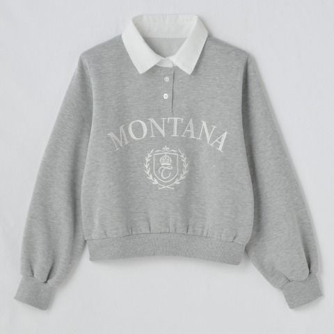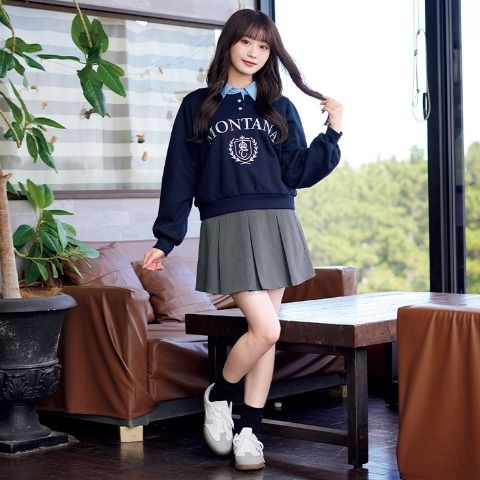 衿付きデザインが特徴の、トレンド感あふれるカレッジ風トレーナー。
