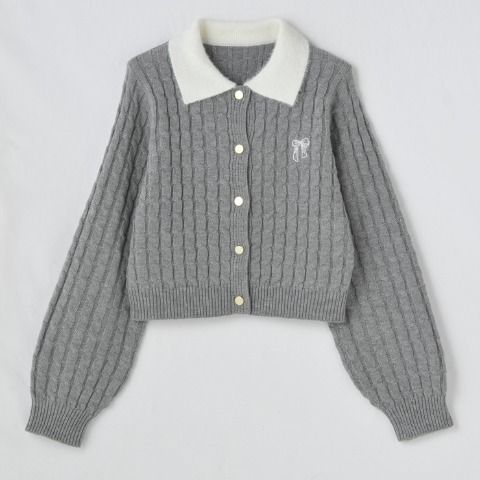 配色衿が目を引く、上品ガーリーな雰囲気のカーディガンニットトップス。