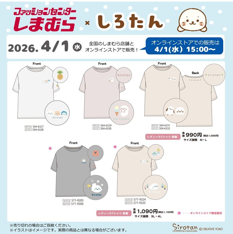 4/1(水)~ 全国のしまむら店舗としまむらパーク(オンラインストア)にて、「しろたん」商品が登場します。