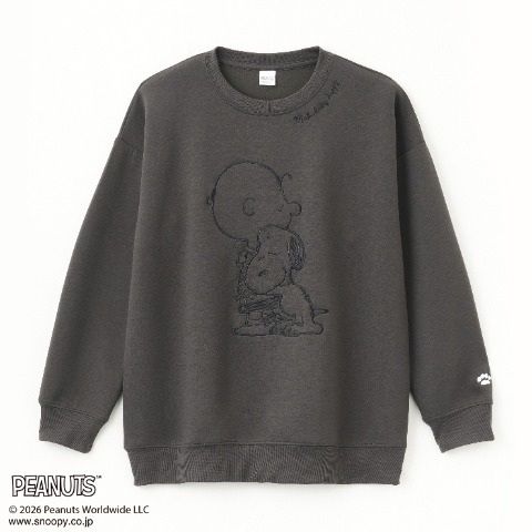 スヌーピーとチャーリー・ブラウンの後ろ姿が可愛いトレーナーです。