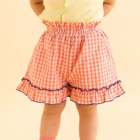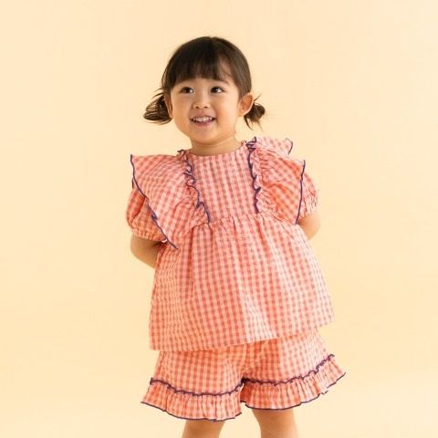 ギンガムチェックにみかんのプリントを施したかわいいデザインです。