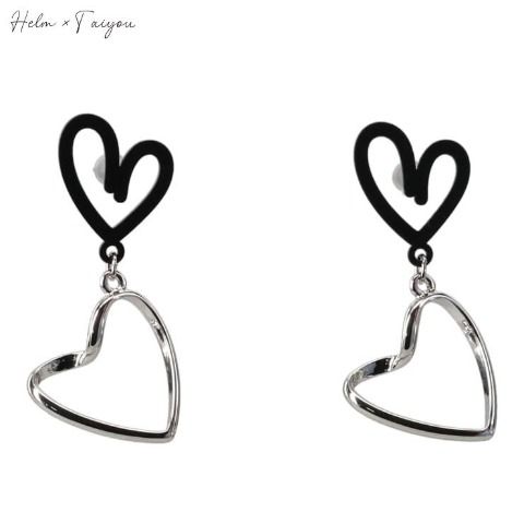 スクエアメタルプレートとチェーンタッセルのイヤーアクセサリー