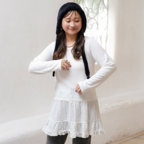 裾にはふわっと異素材レースをドッキング。