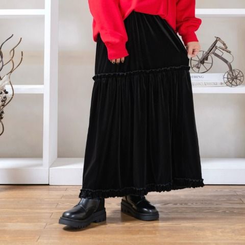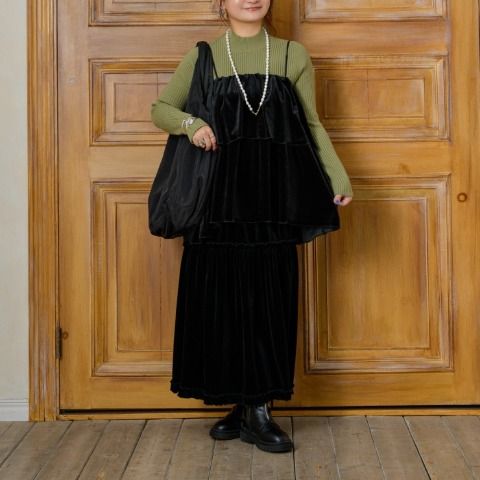 マルチに楽しめる変幻自在フリルビスチェ” ベロア素材のフリルビスチェ。