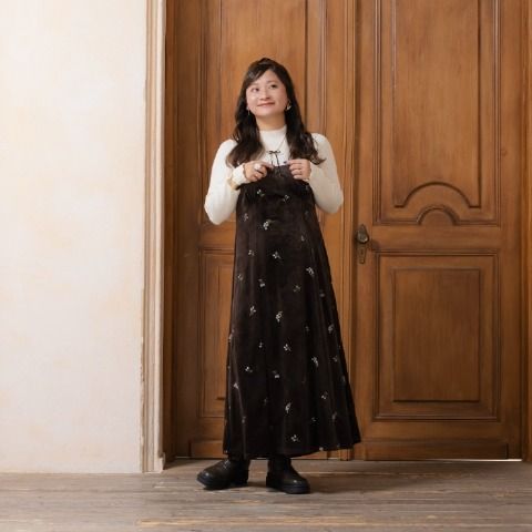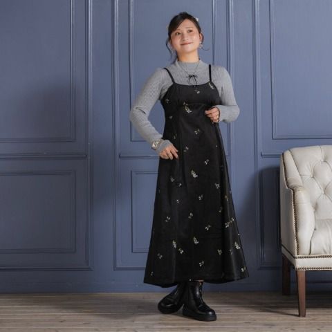 ベロア×花柄刺繍でコーデの主役となれるワンピース。