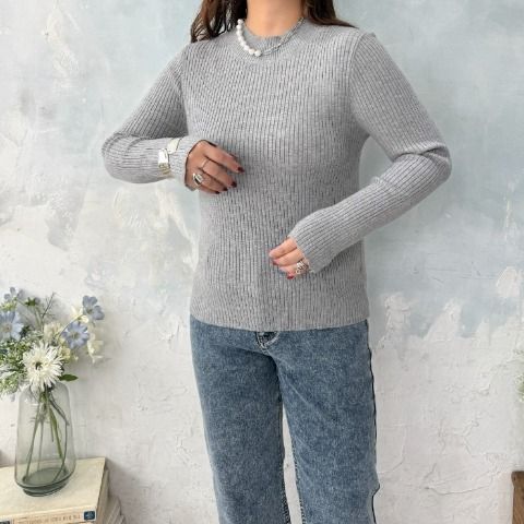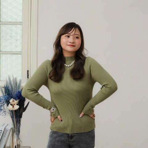 マストアイテムなリブニットは ハイネック仕様なので、秋冬だけではなく まだ肌寒い
