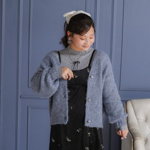 ふわっと柔らかなニット素材にほんのり一癖なニュアンスボタン。