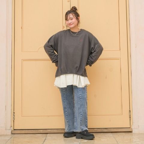 春先まで長く楽しめる、ハート刺繍のバルーンスウェット。