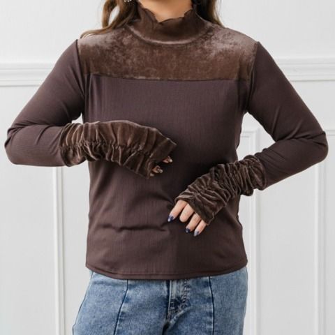 寒い季節のあったらいいなをカタチにした、トップスの中に仕込みたい切替ベロアインナー。