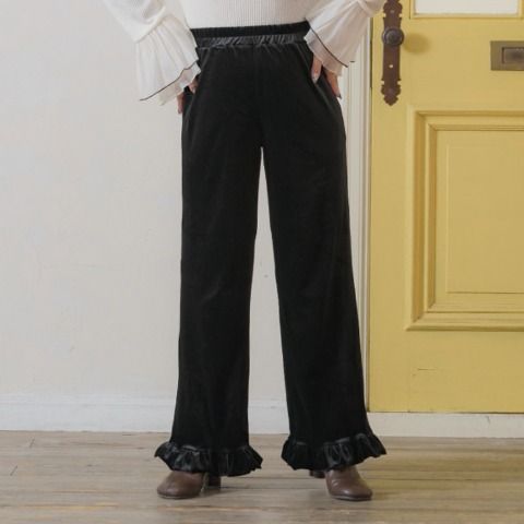 トップスや、ニットの中からチラッと見えるベロアシアーでコーデもグッと今年らしく垢抜ける。