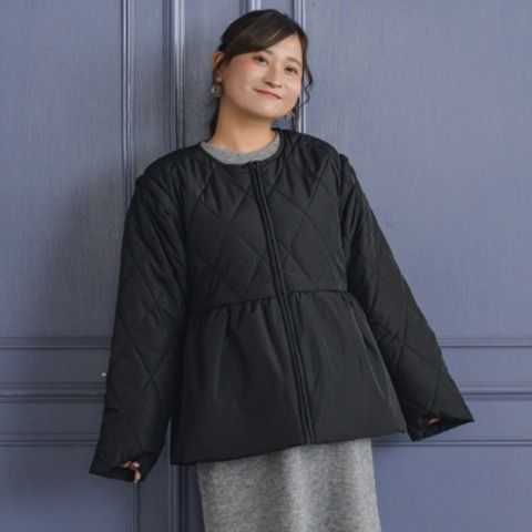 袖取り外し可能な、2wayペプラムキルトジャケット。