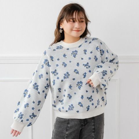レディース 花柄ニットプルオーバー(yuki×Taiyou) 1,790円(税込 1,969円)/大きいサイズ1,990円(税込 2,189円)