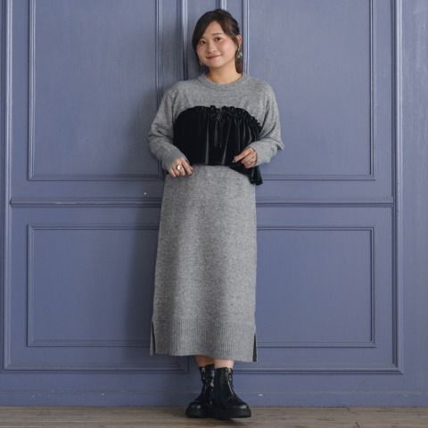 レディース ベロアビスチェ付きニットワンピース(yuki×Taiyou) 2,200円(税込 2,420円)/大きいサイズ2,490円(税込 2,739円)