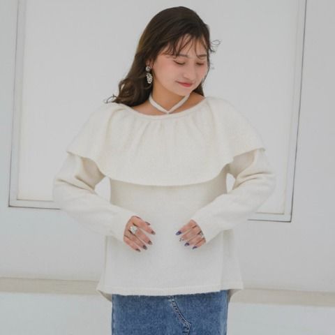 レディース ケープ襟ニットプルオーバー(yuki×Taiyou) 1,790円(税込 1,969円)/大きいサイズ1,990円(税込 2,189円)