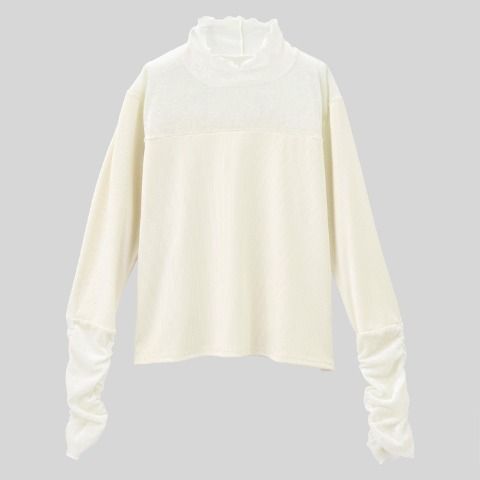 トップスのメインとして着ても可愛い袖の素材が主役となったデザイン。