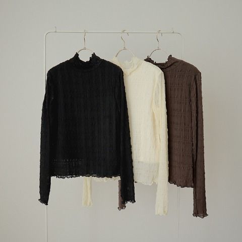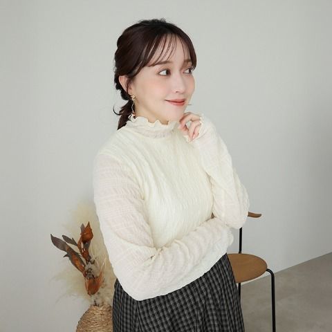 ネック部分と袖はさりげない透け感で女性らしさが高まるシアーインナー。