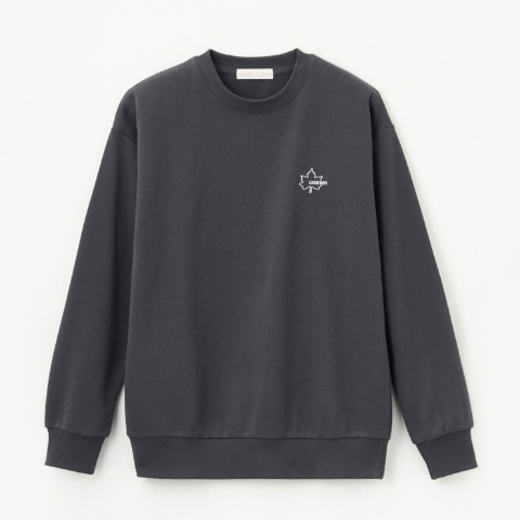 バックのロゴ部分がサガラ刺繍になったトレーナー