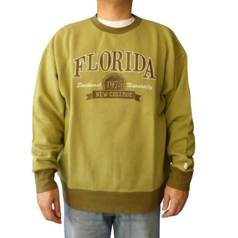 大きなカレッジロゴは高見えな総刺しゅう。袖の刺しゅうもワンポイント◎