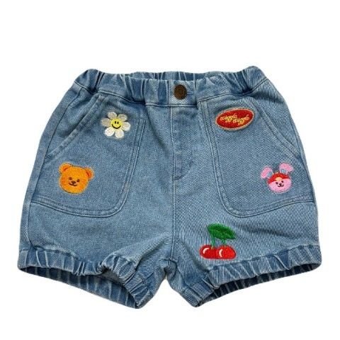 キャラクターの刺繍がポイントのデニムショートパンツです。