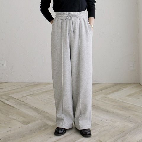 裏起毛素材であたたかい、ピンタック付きワイドパンツ。