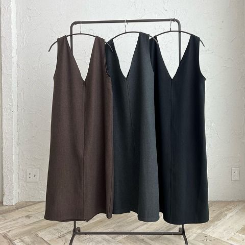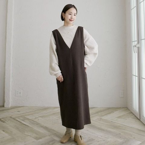 インフルエンサー陽さん、コラボ商品が登場!ヘリンボン織の厚みのある素材を使用した、ジャンパースカート。右側のみポケット付き。後ろスリットありで足さばきが楽です!