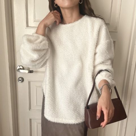 配色リブとサガラ刺繍がアクセントになるボアプルオーバー。 軽くて柔らかいボアが着心地抜群の1枚! オーバーサイズで着るだけでこなれ感のでるプルオーバーです◎